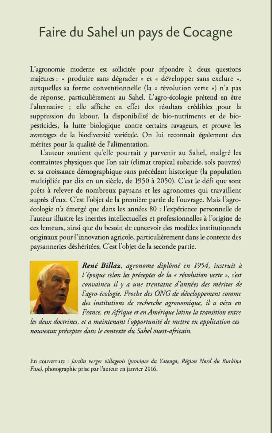 J'ai rassemblé mes recherches sur le potentiel de l'agroécologie sahélienne dans un ouvrage édité en 2016 sous le titre "Faire du Sahel un Pays de Cocagne".
